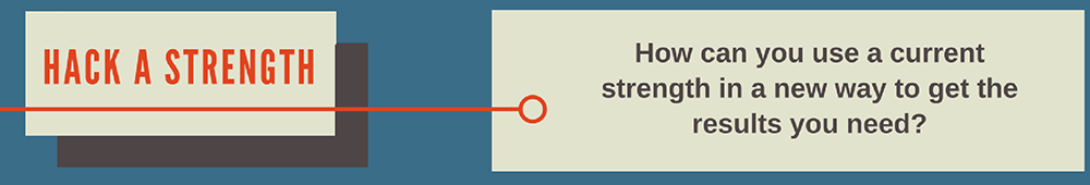 To hack a strength, ask yourself: How could I use a current strength in a new way to get the results I need?